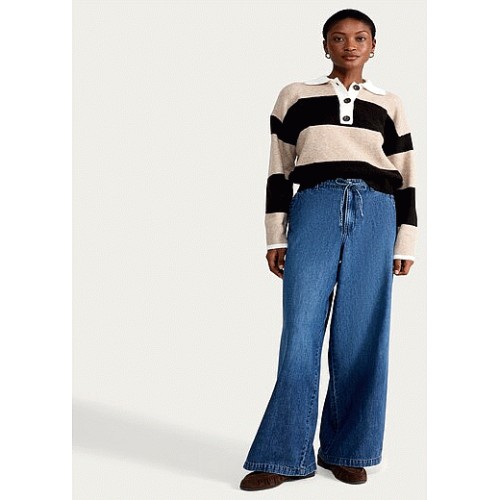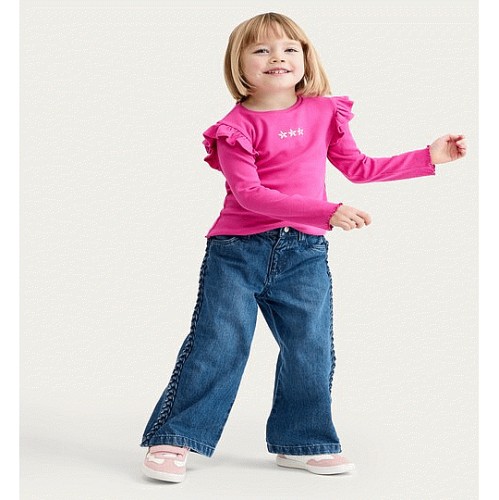 F&F Girls Pure Cotton Braided Side Wide Leg Jeans in Blue