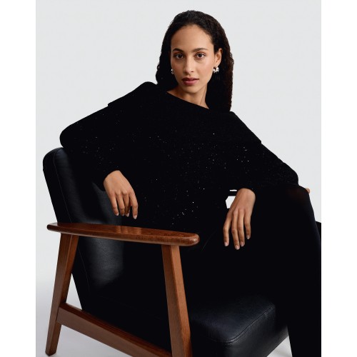 Ribbed Velvet Bow Bardot Jumper with Wool in Cream