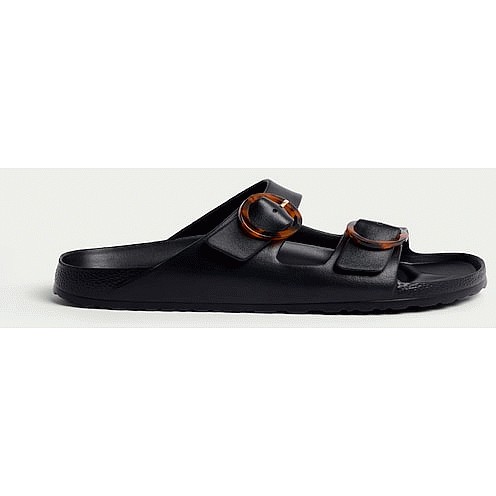 Double Strap Buckle Footbed Sandals in Black