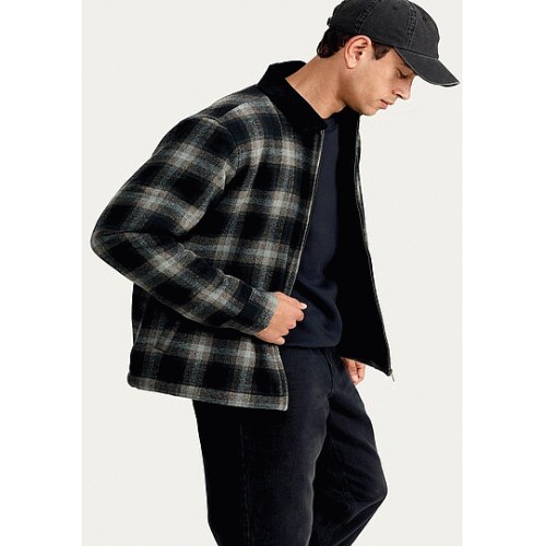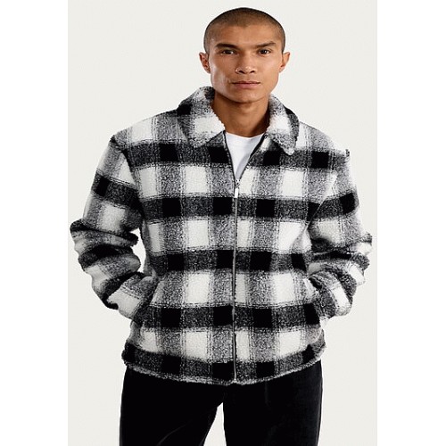 Borg Check Print Zip-Up Relaxed Fit Jacket in Black