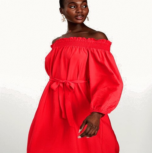 The F&F Edit Long Sleeve Bardot Midi Dress in Red