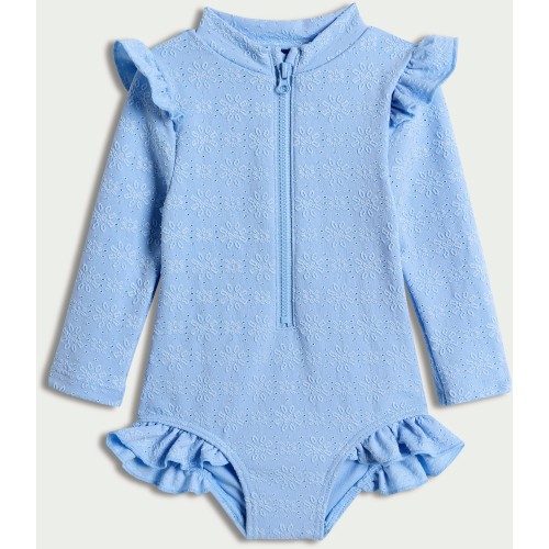 F&F Baby Floral Broderie Frill Long Sleeved Swimsuit in Blue