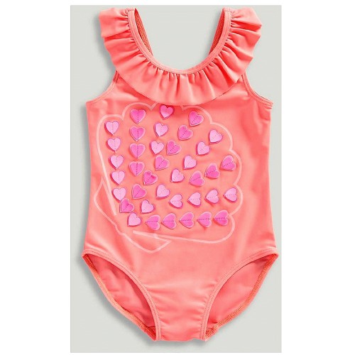 F&F Girls Textured Bow Print Frill Trim Swimsuit in Cream
