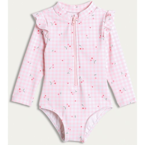F&F Baby Gingham Cherry Print Long Sleeved Swimsuit in Pink