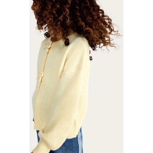 F&F Girls Textured Bow Detail Cardigan in Yellow