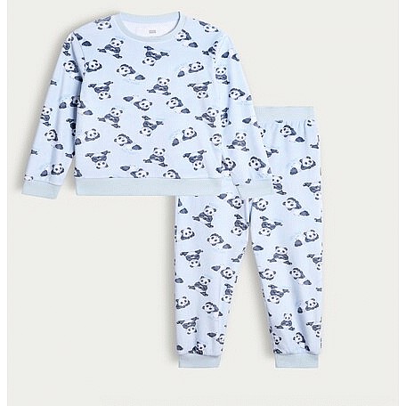 Girls Minky Textured Panda Print Pyjama Set in Blue