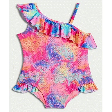 F&F Girls One Shoulder Ruffle Swimsuit in Pink