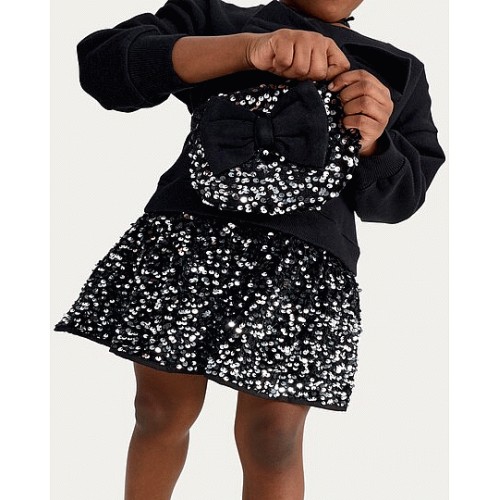 F&F Girls Sequin Bow Dress and Matching Bag Set in Black