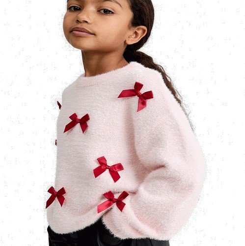 F&F Girls Textured Bow Accent Jumper in Red