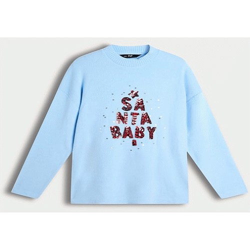 Santa Baby Sequin Slogan Jumper in Blue