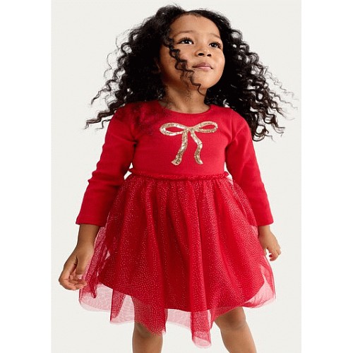 F&F Girls Cotton Rich Sequin Bow Tulle Skirt Dress in Red