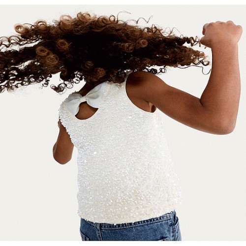 F&F Girls Velvet Sequin Bow Accent Vest in Cream
