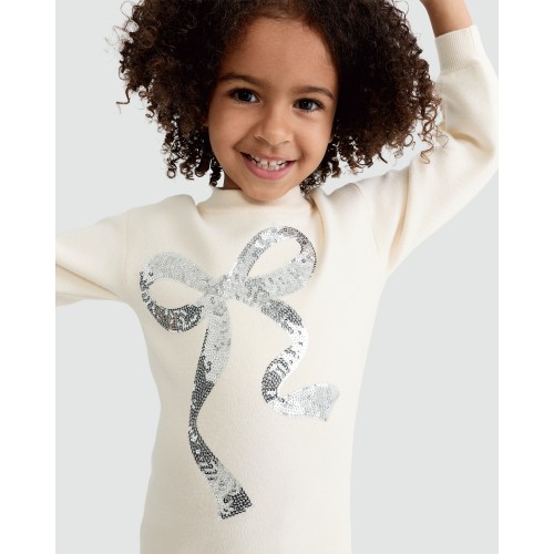 F&F Girls Sequin Bow Jumper Dress in Cream
