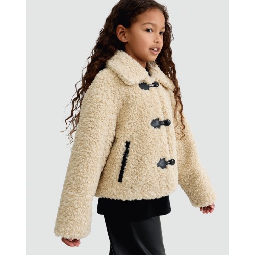 F&F Girls Fleece Textured Teddy Coat in Light Nude