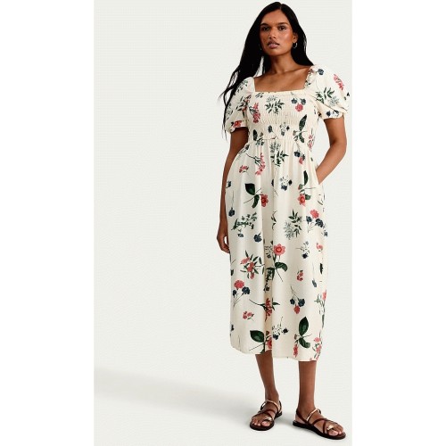 F&F Girls Floral Applique Puff Sleeved Dress in Cream
