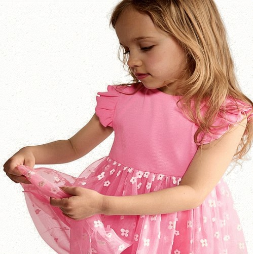F&F Girls Cotton Rich Floral Tulle Dress in Pink