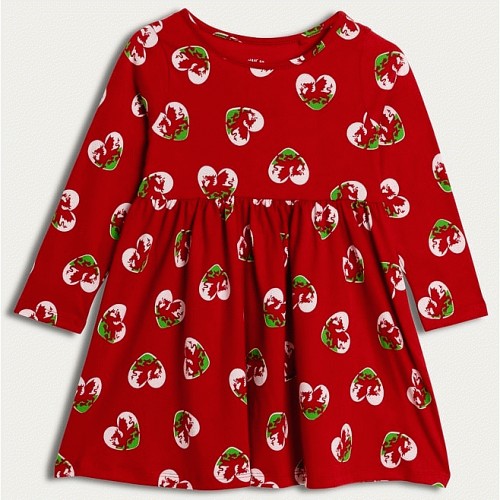 F&F Girls Pure Cotton St David's Day Long Sleeved Dress in Red