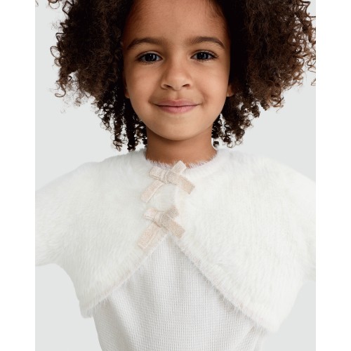 F&F Girls Fluffy Bow Accent Bolero in Cream