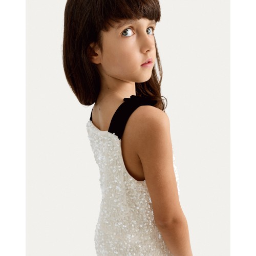 F&F Girls Velvet Strap Sequin Dress in Cream