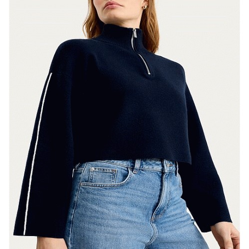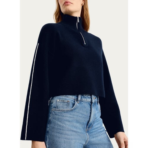 Pure Cotton Knitted Half Zip Jumper in Navy