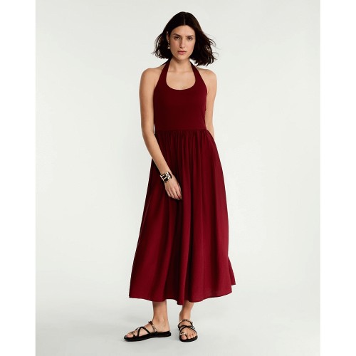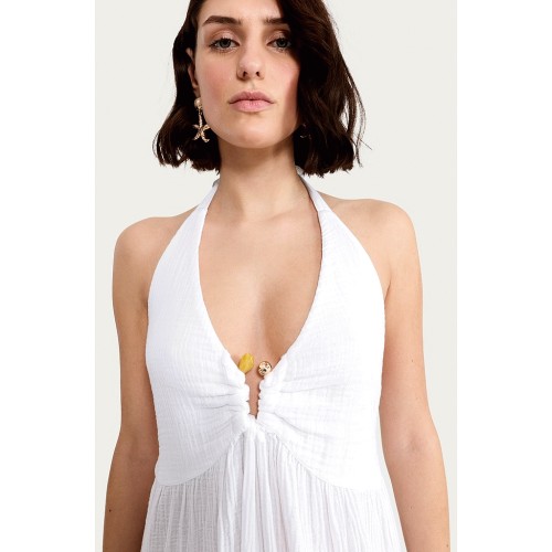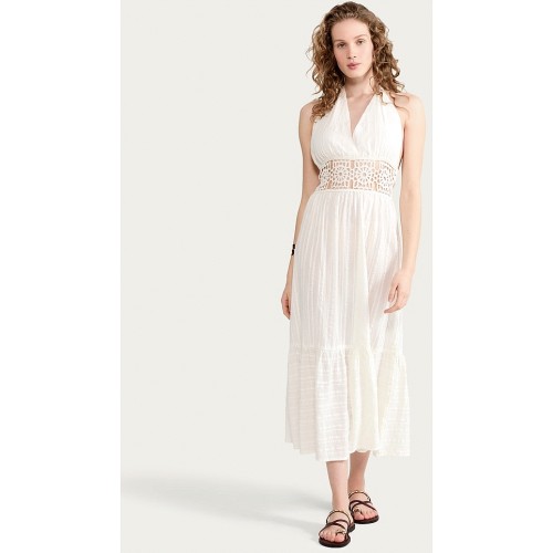 Pure Cotton Halter Neck Midi Beach Dress in Ivory