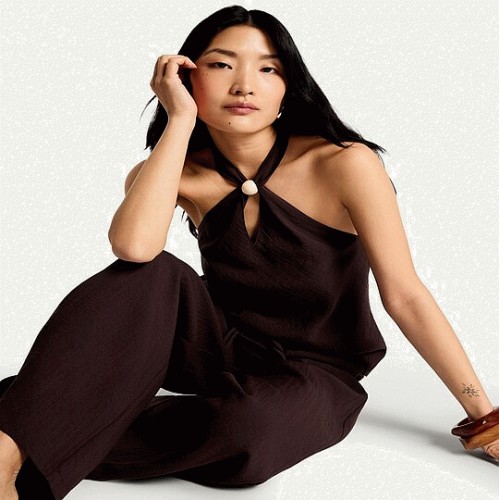 Bead Accent Halter Neck Co-ord Top in Chocolate