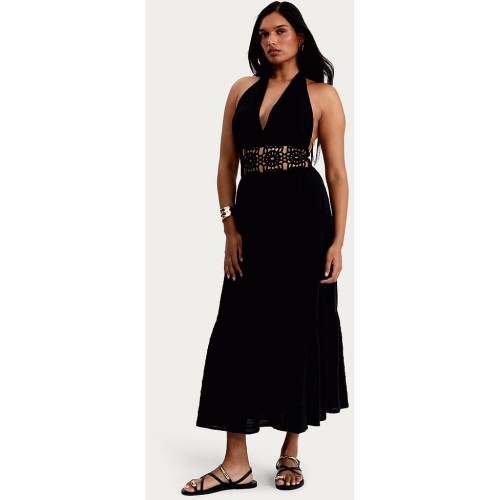 Pure Cotton Halter Neck Midi Beach Dress in Black