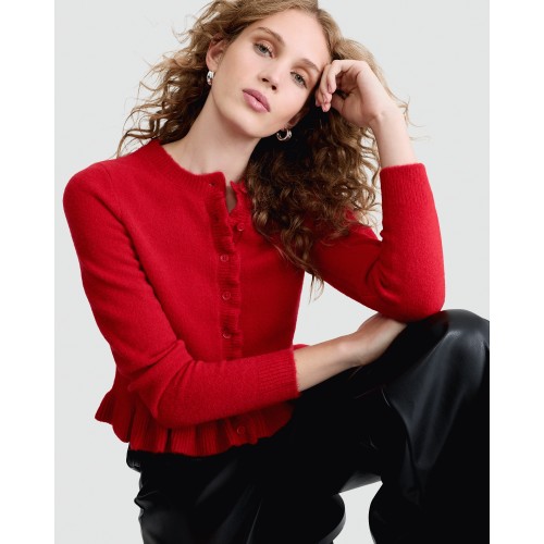 V Neck Button Up Balloon Sleeved Co-ord Cardigan in Chocolate
