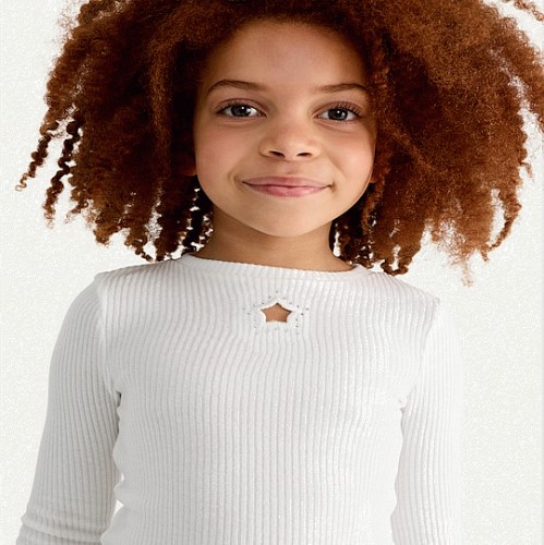 F&F Girls Ribbed Star Cut Out Top in Cream
