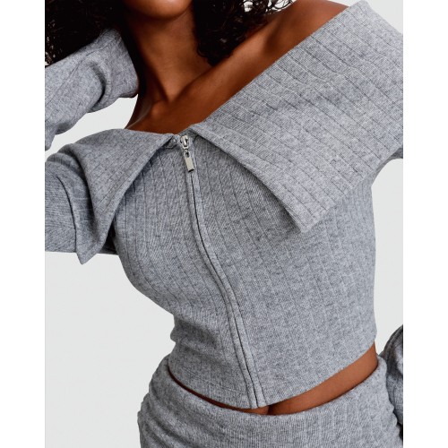 OH ME OH MY Ribbed Off Zip Through Co-ord Top in Grey
