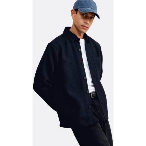 Textured Button Up Shacket in Navy