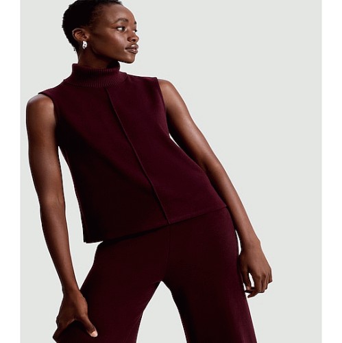 Seam Detail Roll Neck Sleeveless Co-Ord Top in Burgundy