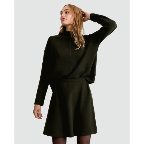 High Neck Short Sleeved Co-ord Top with Cotton in Olive
