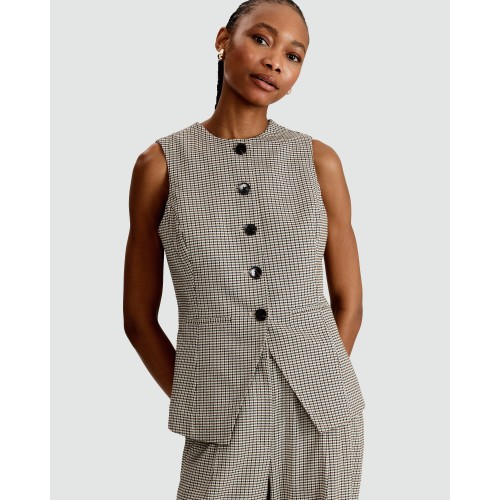 The F&F Edit Houndstooth Print High Neck Buttoned Waistcoat in Brown