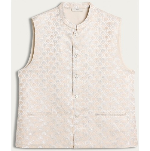 The F&F Edit Houndstooth Print High Neck Buttoned Waistcoat in Brown
