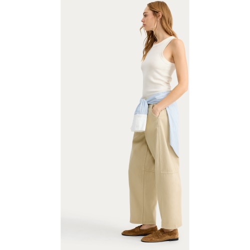 Seam Detail High Rise Barrel Leg Jeans in Ecru