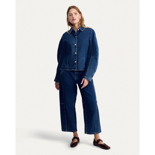 The F&F Edit High Rise Seam Detail Barrel Leg Jeans in Blue