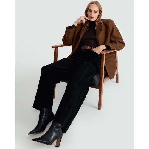 High Rise Seam Detail Wide Leg Jeans in Blue