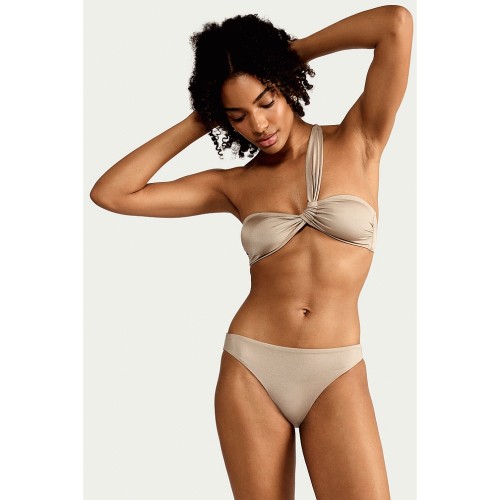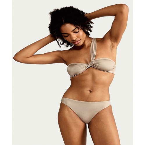High Shine Ruched High Waisted Bikini Bottoms in Brown