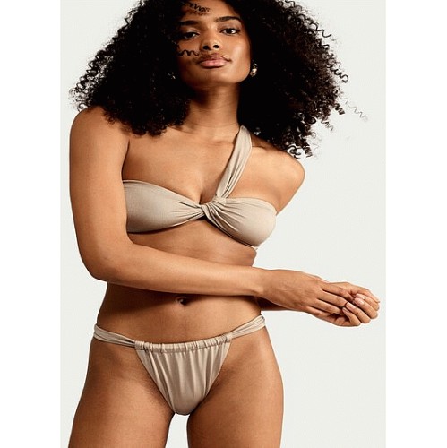 High Shine Gathered High Leg Bikini Bottoms in Grey