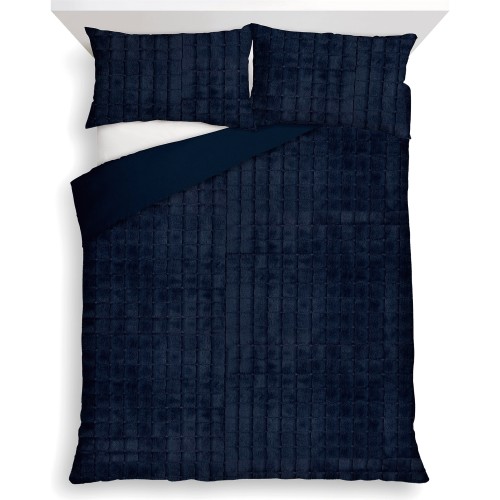 Bedding Navy Grid Faux Fur Duvet Set Double