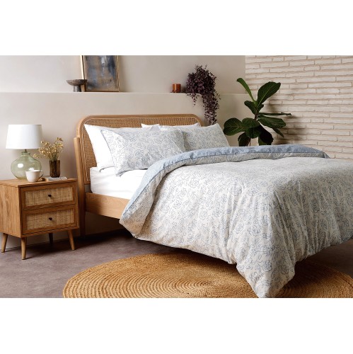 Blue Washed Cotton Block Floral Duvet Set King