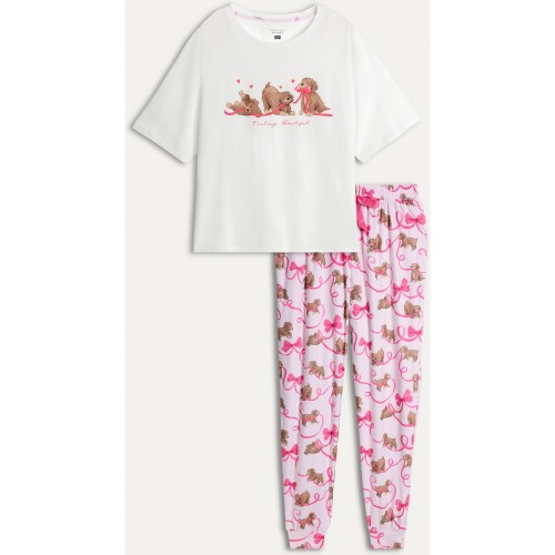 Curtis The Dog Puppy Print Pyjama Set in Cream