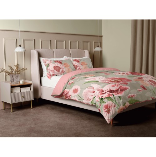 Pink Inky Floral Brushed Cotton Duvet Set Double