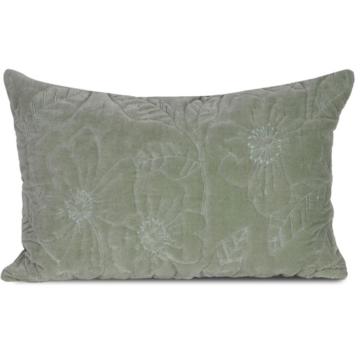Soft Green Embroidered Velvet Cushion