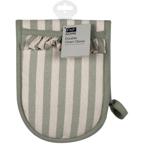 Green Striped Double Oven Gloves