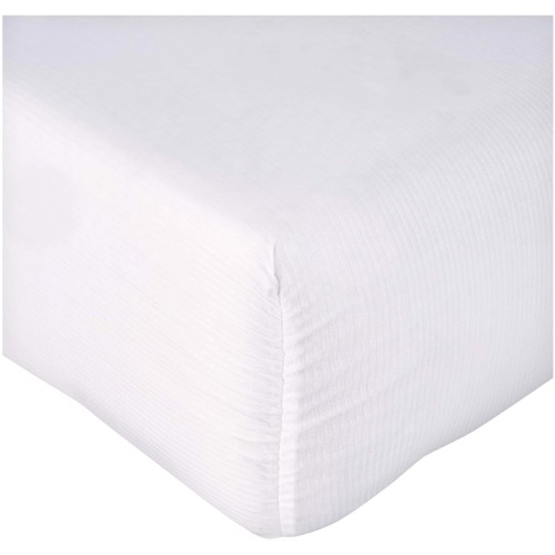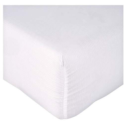 Hotel White Sateen Stripe 400TC Cotton Tencel Fitted Sheet Single