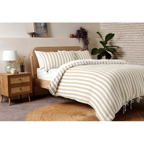Natural Stripe Muslin Duvet Set Double
