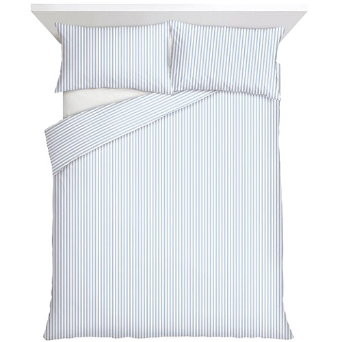 Silver 100% Cotton Sateen Stripe Duvet Set King