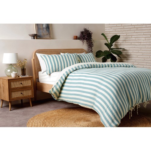 F&F Home Natural Muslin Stripe Duvet Set Double
